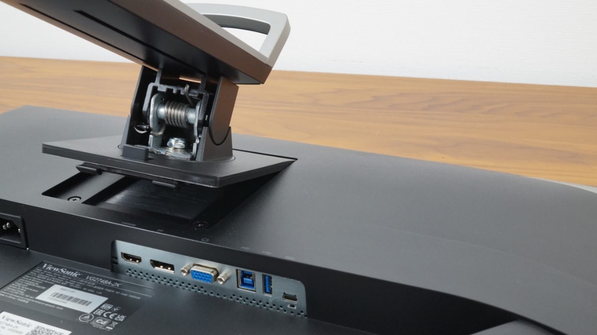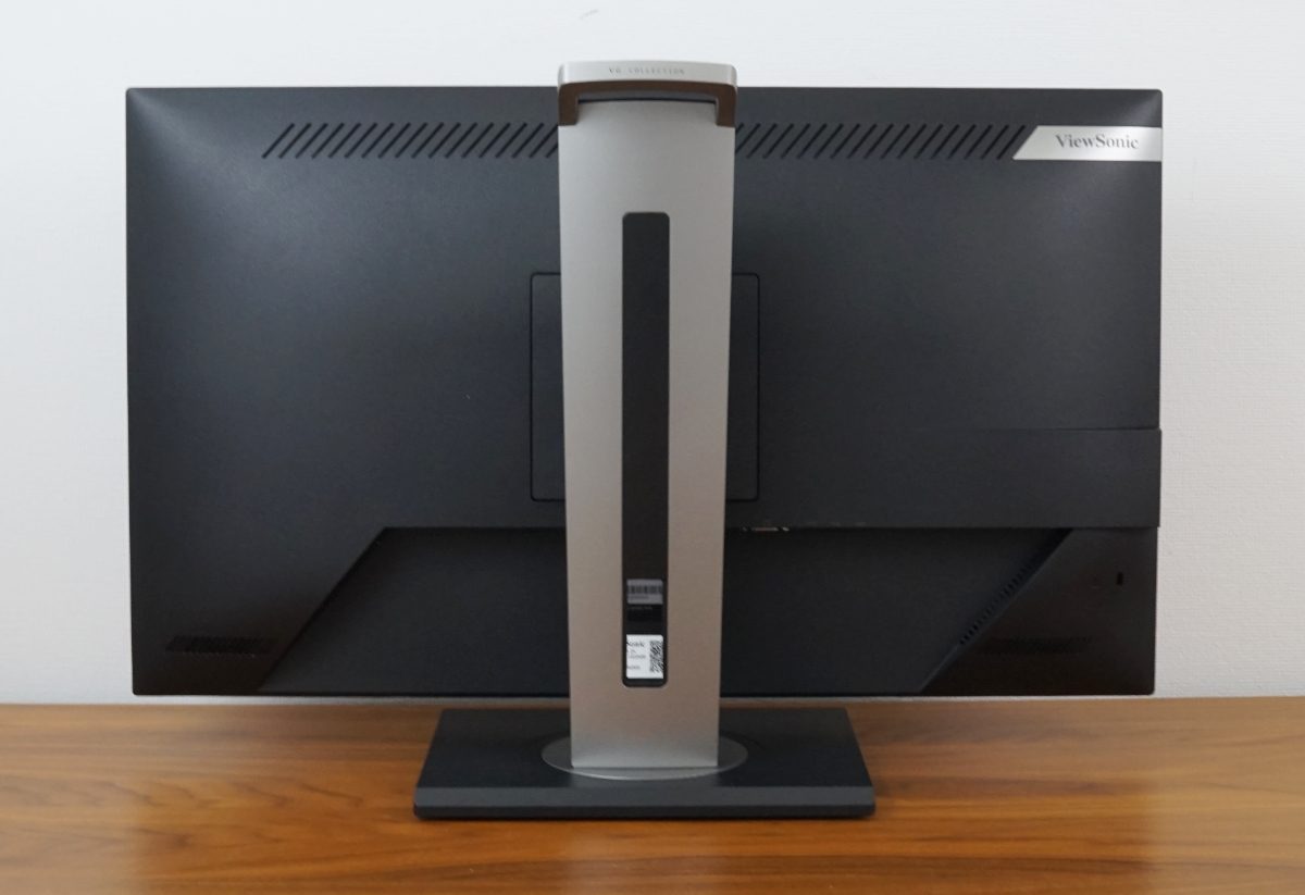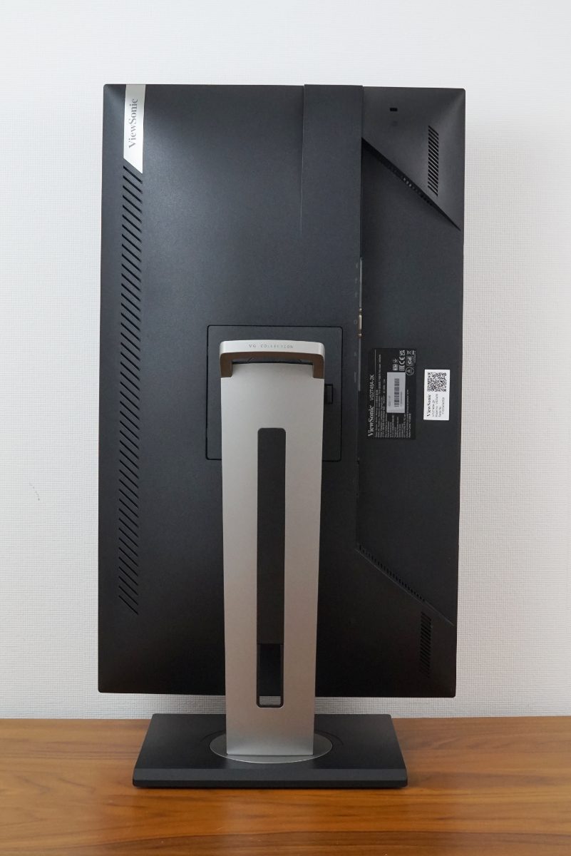 Beim ViewSonic VG2748A-2K ist das Netzteil im Gehäuse integriert, einen Netzschalter besitzt der Monitor nicht. Oberhalb des Erkers befinden sich Lüftungsschlitze. Eine Erwärmung der Rückseite war jedoch selbst nach mehrstündigem Betrieb nicht feststellbar.