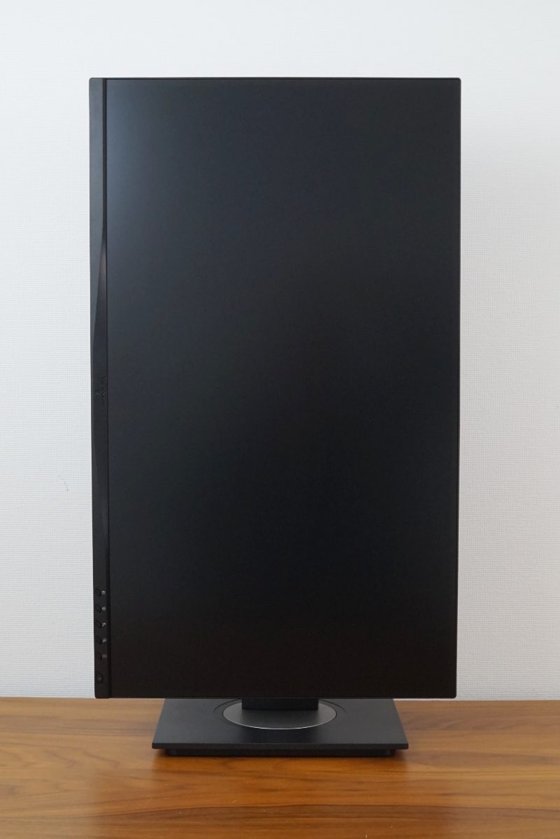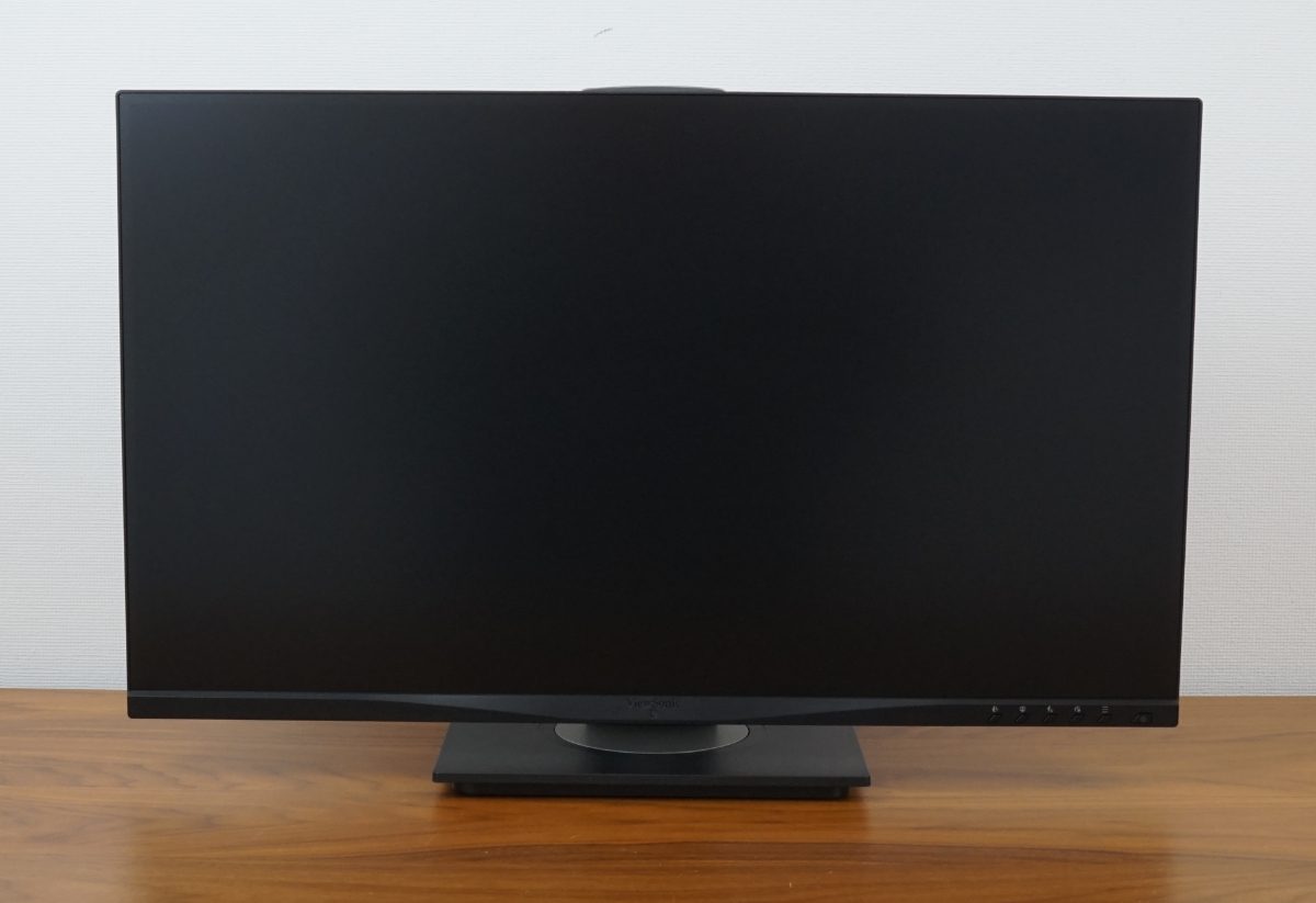 Der ViewSonic VG2748A-2K überzeugt optisch durch das dreiseitige rahmenlose Design. Die Verarbeitungsqualität und die Materialhaptik sind ansprechend. Der frontale Rahmen ist seitlich und oben etwa 1 mm breit, während der untere Rahmen eine Höhe von 1,7 cm aufweist. Der zusätzliche Rand, der im Betrieb durch die nicht genutzte Anzeigefläche sichtbar ist, hat eine Breite von circa 5 mm, während sie im unteren Bereich 2 mm beträgt.
