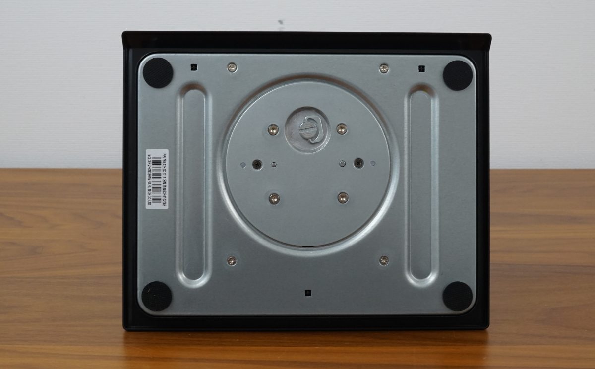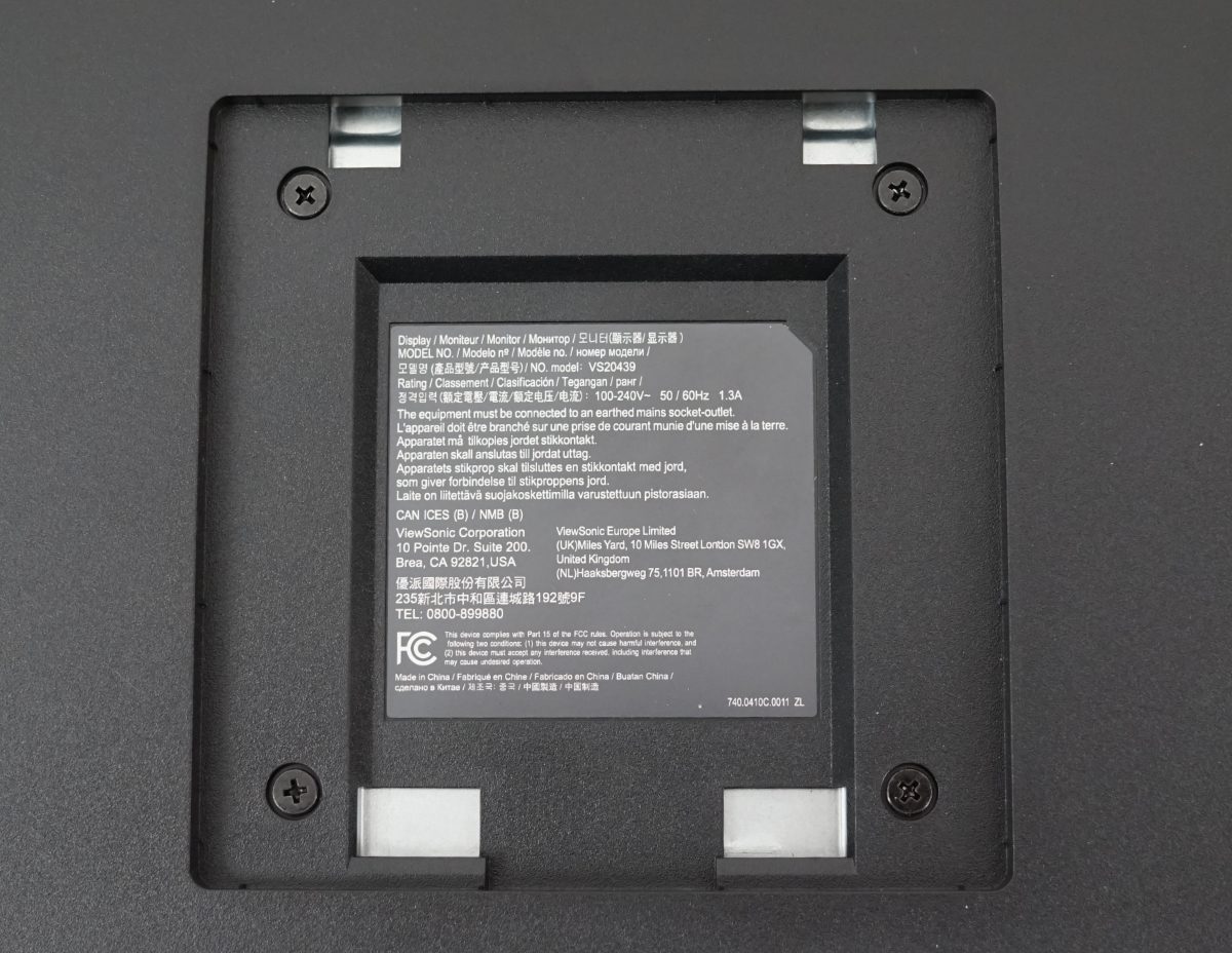 Um den ViewSonic VG2748A-2K stabil an seinem Platz zu halten, sind an der Unterseite des Standfußes vier Gumminoppen angebracht. Sie sollen ein Verrutschen des Monitors bei seitlicher Drehung verhindern, was allerdings nicht gelingt. Beim seitlichen Drehen sollte der Standfuß mit einer Hand fixiert werden.