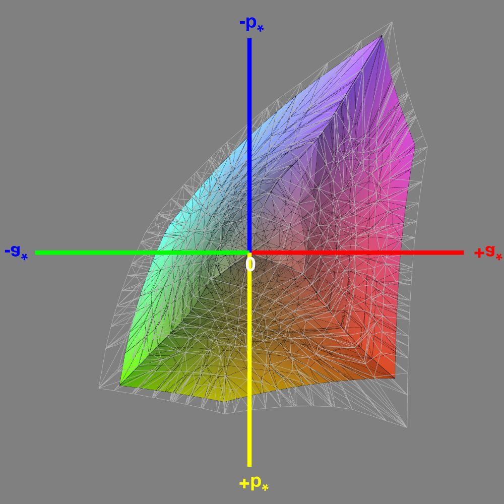 Ein fehlender Farbumfang wird durch ein schwarzes Gitter gekennzeichnet, eine größere Abdeckung durch ein hellgraues.