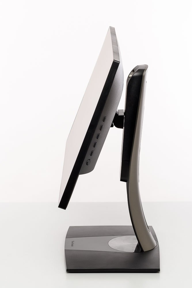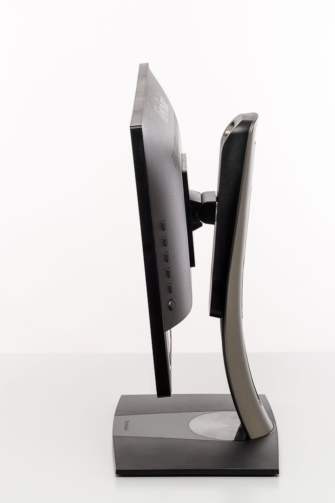 Bei den Ergonomie-Funktionen bleiben keine Wünsche offen: 13 cm Höhenverstellung, Drehung um je 60° in beide Richtungen, Neigung von -5° bis +21° sowie der 90°-Schwenk in das Hochformat. Die Mechanik ist dabei auf jeden Fall in allen Einstellmöglichkeiten angenehm leichtgängig. Auch die Stabilität ist ordentlich.