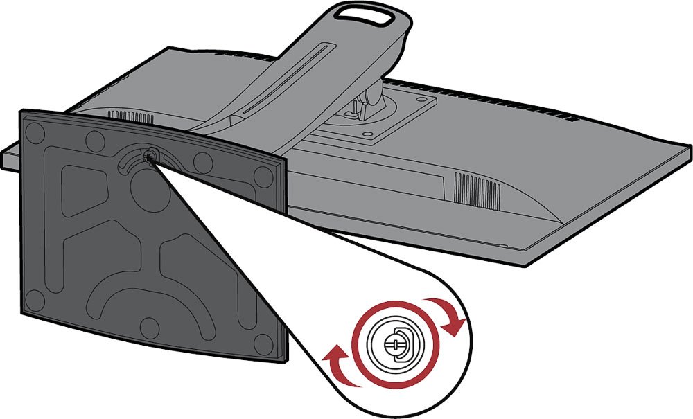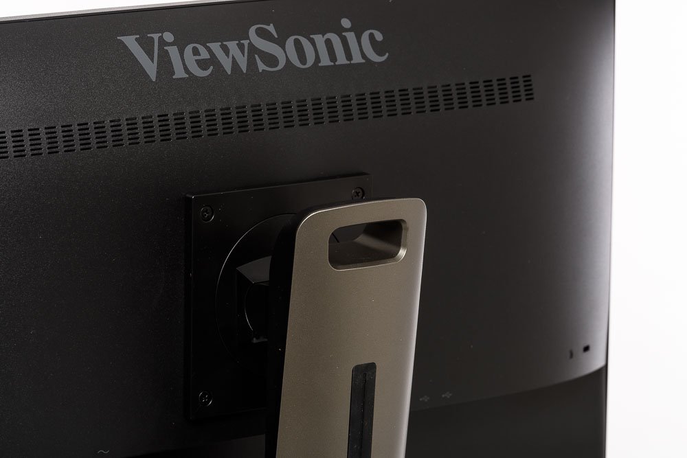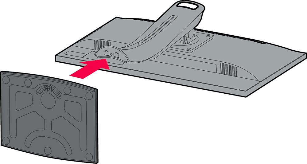 Zur Wandmontage nach VESA (100 x 100 mm) kann das Standbein gelöst werden. Das geht dann allerdings nicht mehr werkzeugfrei. Ferner ist ein separater Adapter zur Montage auf Schwenkarme bzw. Wandhalterungen nötig.