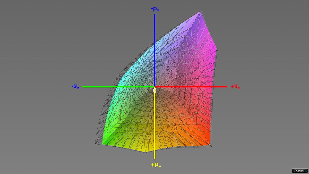 Allerdings liegt die gemessene DCI-P3-Abdeckung bei 91 %, sodass nicht der gesamte Zielfarbraum vollständig erreicht wird. In der Praxis bedeutet dies, dass besonders gesättigte P3-Farben nicht in vollem Umfang reproduziert werden können.
