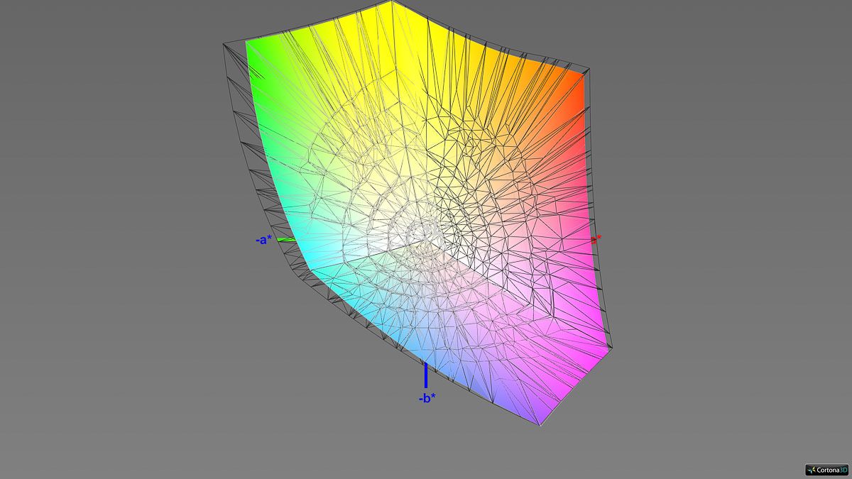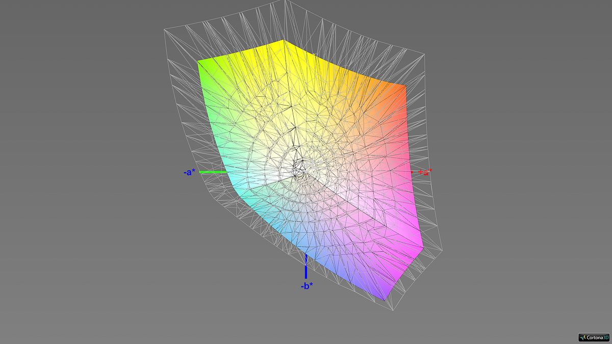 Bei den Farbabweichungen zeigen sich hingegen etwas höhere Ausschläge (Delta-E-2000-Average: 1,30; Maximum: 2,64). Einzelne Messpunkte überschreiten damit leicht die Marke von Delta E < 2, bleiben jedoch insgesamt auf einem guten Niveau. Die Farbraumabdeckung liegt allerdings nur bei 91 %.