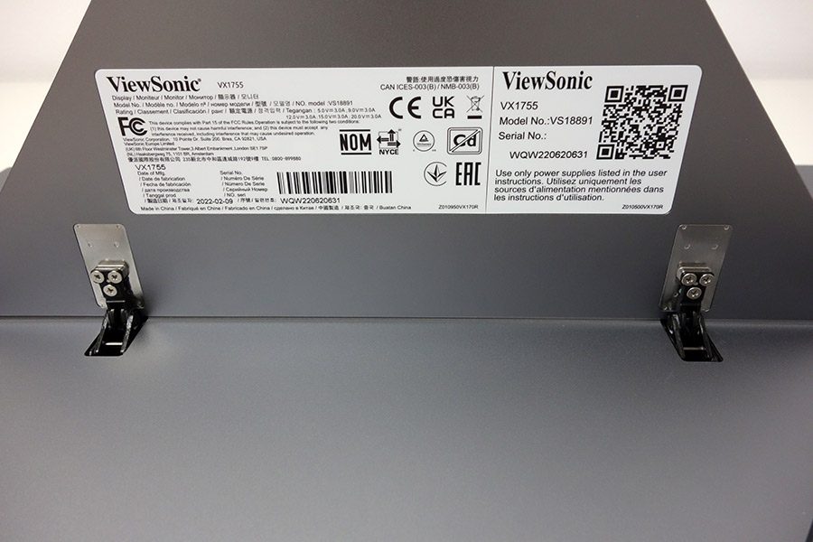 Der ViewSonic VX1755 besitzt einen integrierten Standfuß, allerdings kann damit nur die Display-Neigung eingestellt werden. Eine variable Höheneinstellung ist nicht möglich, zudem kann der Monitor nicht hochkant (Pivot) aufgestellt werden. Geschraubte Scharniere aus Metall sorgen für Stabilität, außerdem ist auch der Standfuß aus Metall gefertigt.