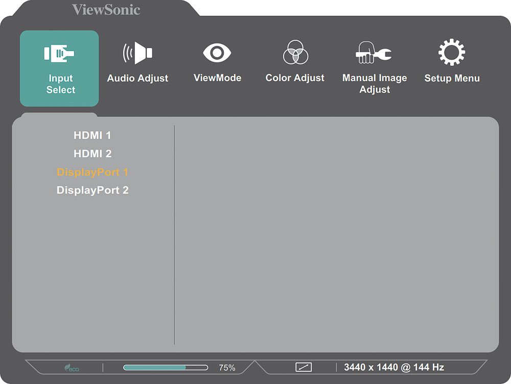 Der ViewSonic VX3418C-2K ist praxisgerecht ausgestattet und bietet alle gängigen digitalen Videoeingänge: Auf der Rückseite – zentral unterhalb der VESA-Halterung – befinden sich: