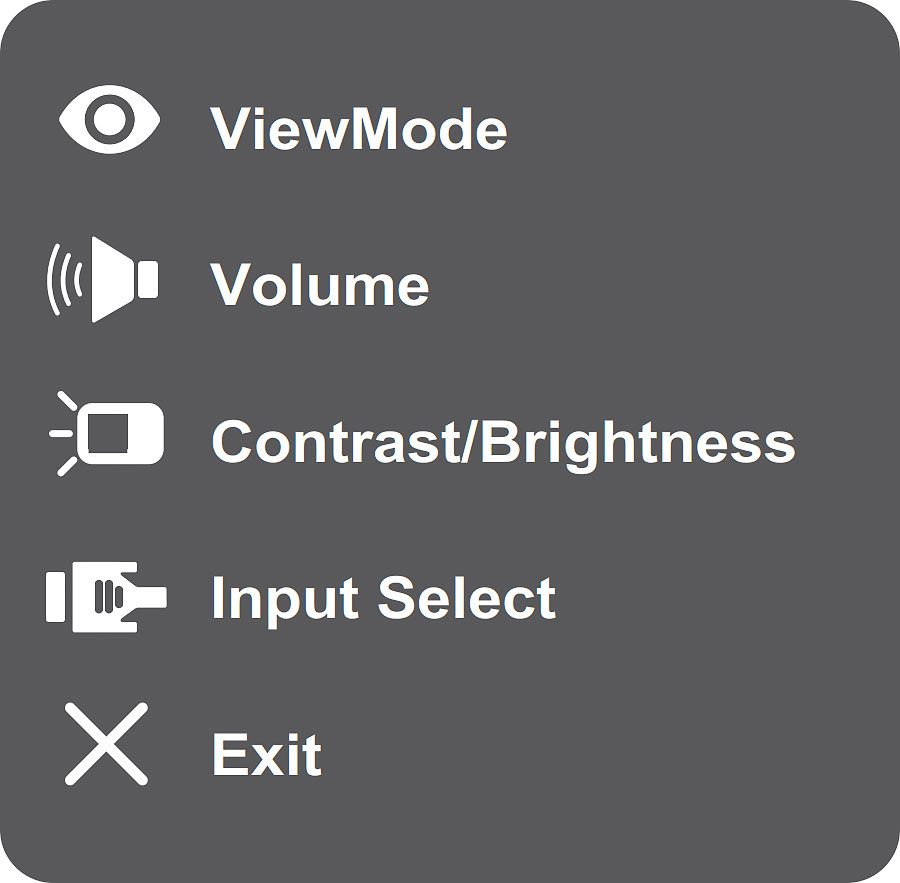 Die tatsächliche Darstellung zeigt auch das Problem: Aus dem Schnellmenü gelangt man nicht direkt ins Hauptmenü und kann es auch nicht einfach schließen – man muss warten, bis der OSD-Timer abläuft, oder den Button längere Zeit gedrückt halten. Wer sofort ins Hauptmenü möchte, muss die Joystick-Taste nach oben, unten oder zur Seite bewegen – eine zumindest für uns unlogische Navigation. Innerhalb des Schnellmenüs lassen sich Bildmodus, Lautstärke, Kontrast/Helligkeit und Eingangsquelle einstellen.