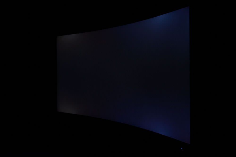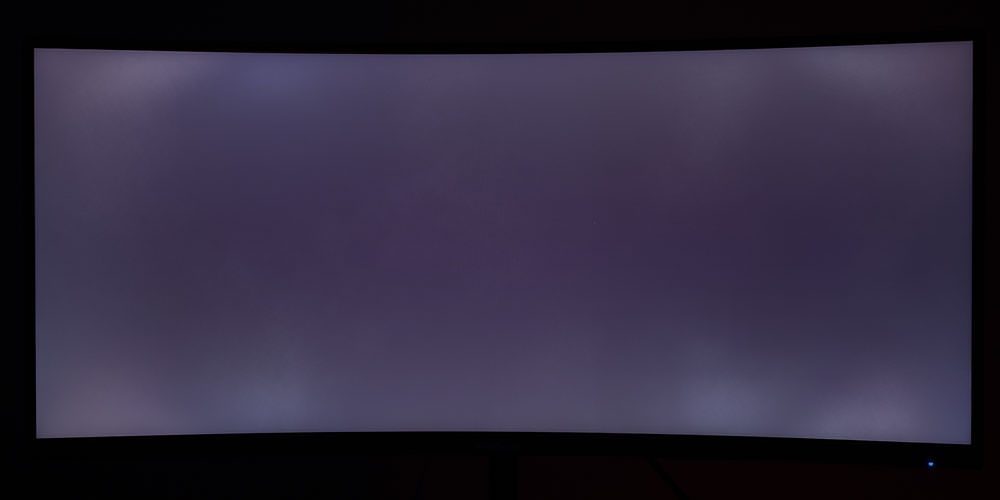 Hier kann der ViewSonic VX3418C-2K mit seinem VA-Panel punkten. Bei mittiger Sitzposition wirkt das Bild sehr gleichmäßig und dunkel, ohne nennenswerte Aufhellungen – allenfalls am unteren Rand lassen sich minimale Helligkeitsunterschiede erahnen. Bei lotrechter Betrachtung der Ränder sind mit bloßem Auge keine Lichteinstrahlungen erkennbar. Erst bei schräger Betrachtung, insbesondere diagonal, wird deutlich, dass die Ausleuchtung nicht völlig homogen ist. Die dann sichtbaren Aufhellungen zeigen eine leicht gelblich-orange Tönung.