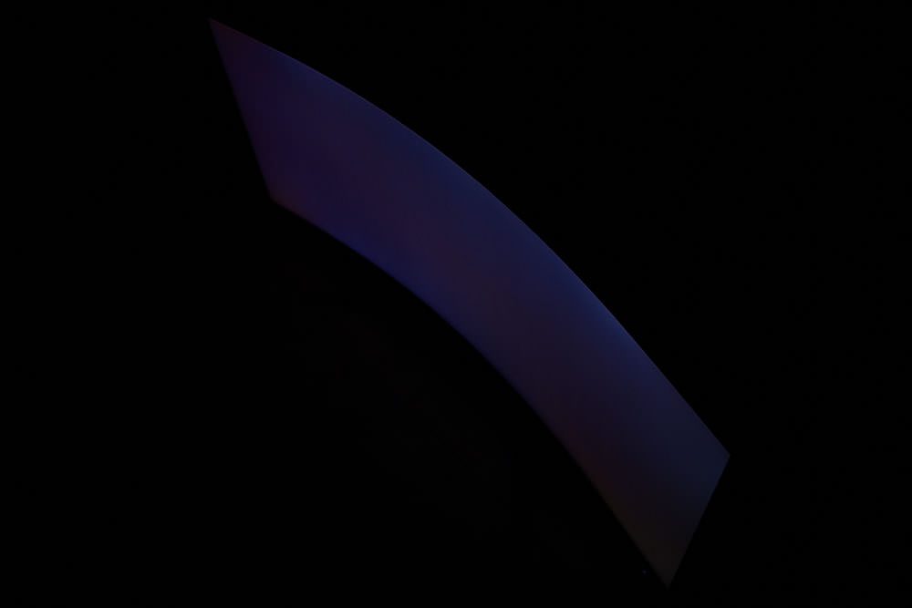 Weicht man stark von der Mitte ab, hellt das Bild insgesamt leicht auf – jedoch bei Weitem nicht so stark wie bei IPS-Panels und in der Horizontalen kaum störend. In diesem Fall werden allerdings seitliche Randeinstrahlungen sichtbar. Am deutlichsten zeigt sich die Aufhellung aus schräger Draufsicht: Hier färbt sich der Bildschirm dann auch lila, während die Ecken weiterhin eher orange eingefärbt wirken.