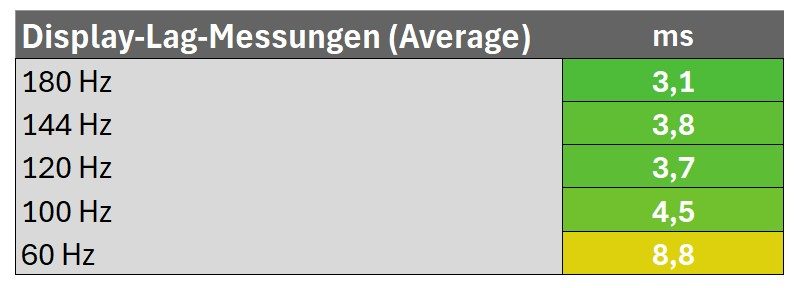 Die Lag-Zeiten sind kurz und erzielen für einen Gaming-Monitor praxistaugliche Werte.