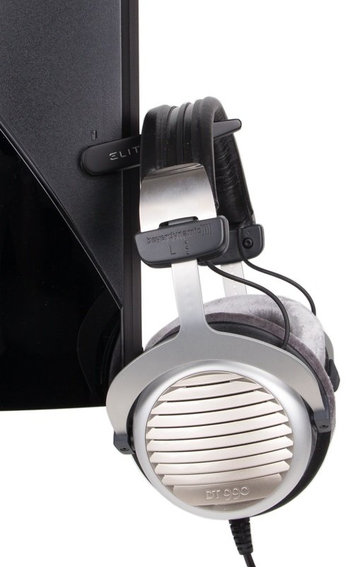 Direkt hinter dem linken Frontrahmen gibt es eine Halterung für einen Kopfhörer. Diese kann von vorn gut erfühlt und einfach nach unten gezogen werden. Anschließend wird ein Kopfhörer mit seinem Bügel über die Halterung gelegt. Da Gamer häufig Kopfhörer verwenden, ist dies ein sinnvolles Feature. Anwender, die es nicht nutzen möchten, haben zudem keine störende Halterung im Blick, da diese leicht wieder zu verstecken ist.