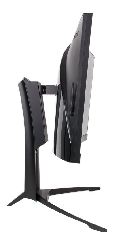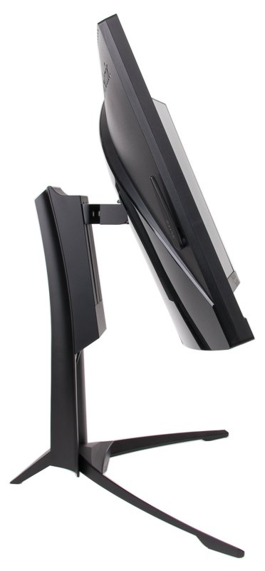 In den Pivot-Modus kann das Gerät nicht gedreht werden, was bei einem Monitor mit gebogenem Frontbildschirm aber auch nicht sinnvoll ist. Die Neigung kann dagegen sehr bequem von 5 Grad nach vorn und bis 23 Grad nach hinten eingestellt werden. Dieser Einstellbereich war durchgehend flüssig, und trotzdem blieb das Gerät an jeder gewünschten Stelle in seiner Position.