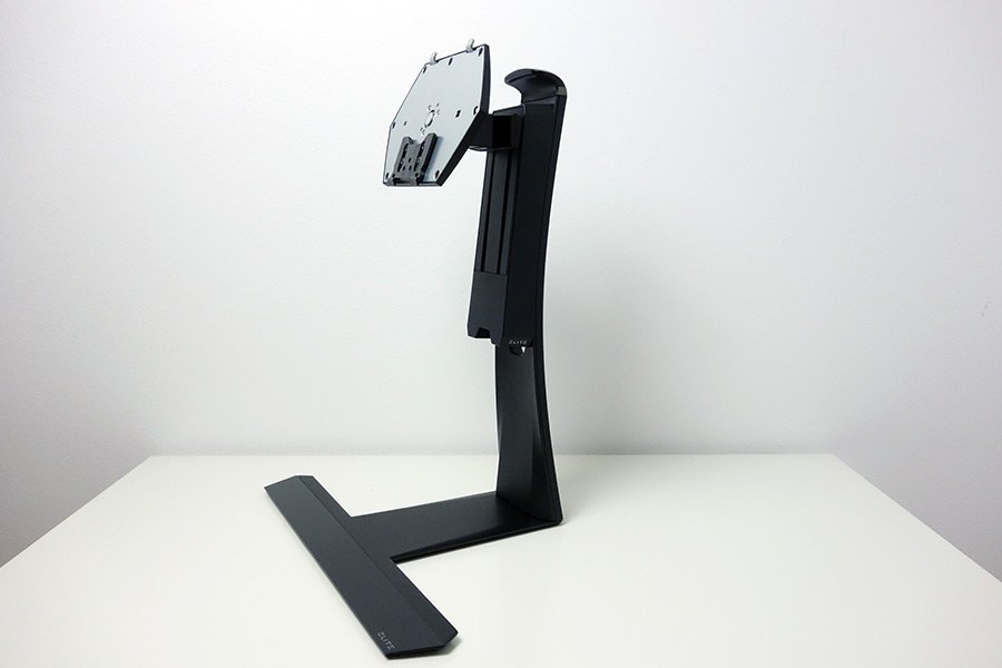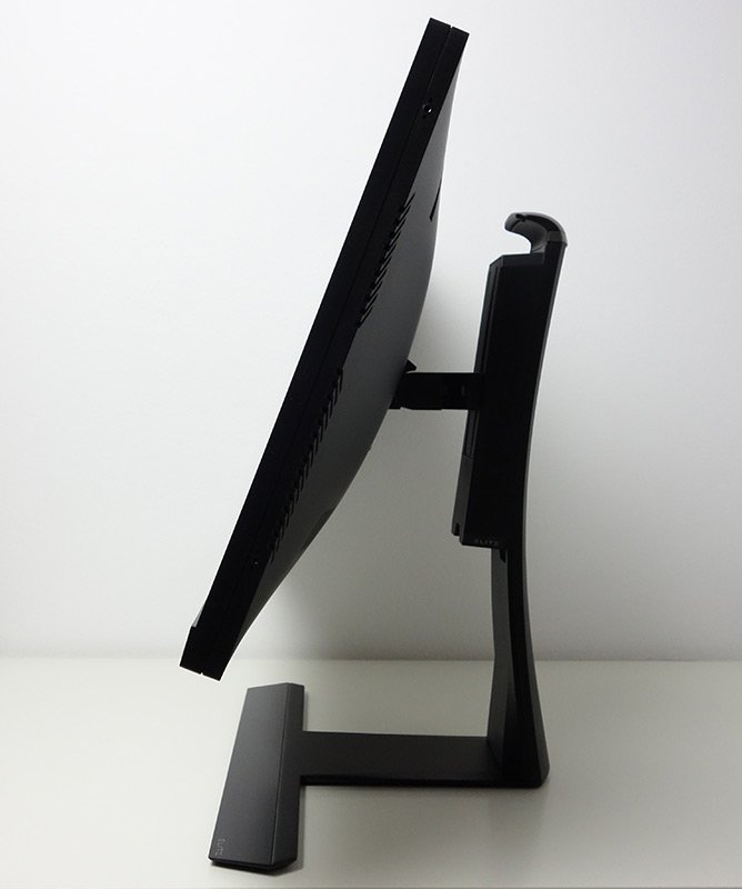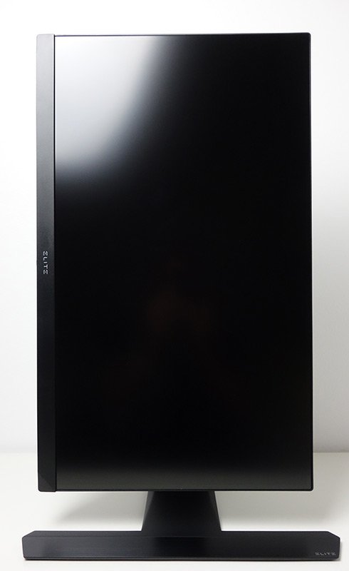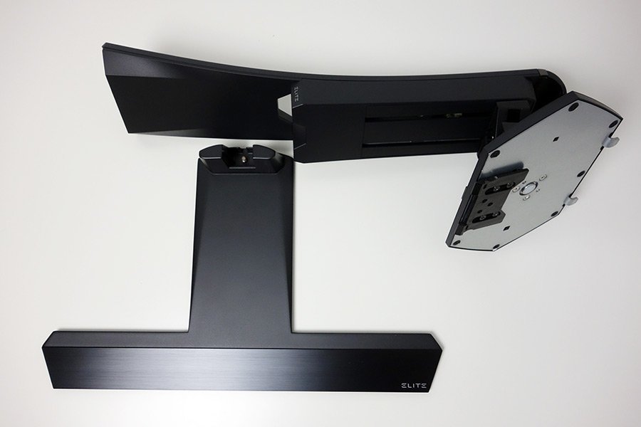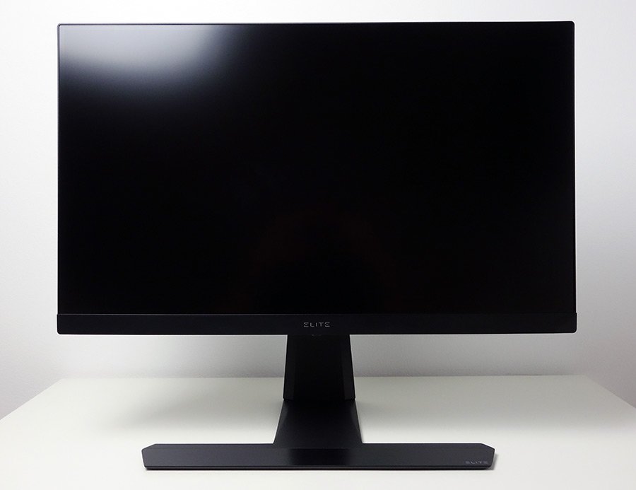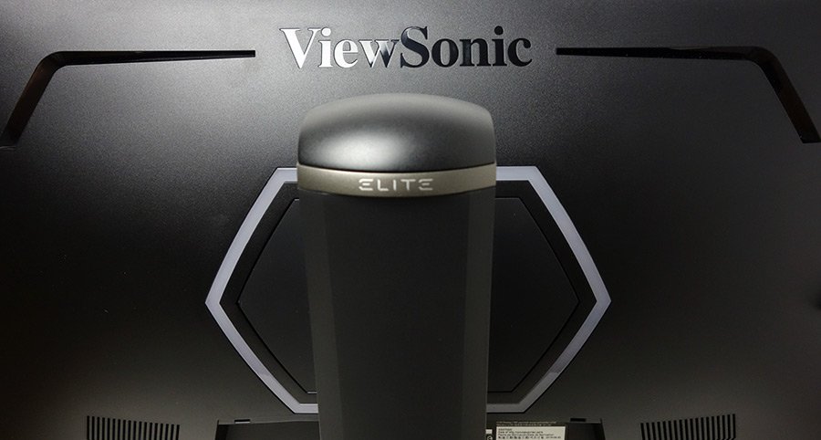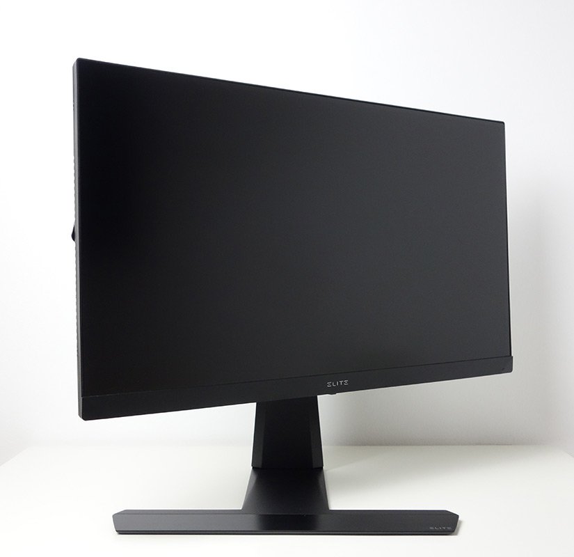 An vielen Stellen am Gehäuse und Standfuß ist die Modellbezeichnung ELITE zu lesen. So befindet sich am unteren Gehäuserahmen mittig platziert nicht wie meist üblich der Herstellername, sondern die Modellbezeichnung. Seitlich am Standfuß, am oberen Ende des Standfußes und am Standbein wiederholt sich der Schriftzug ELITE.