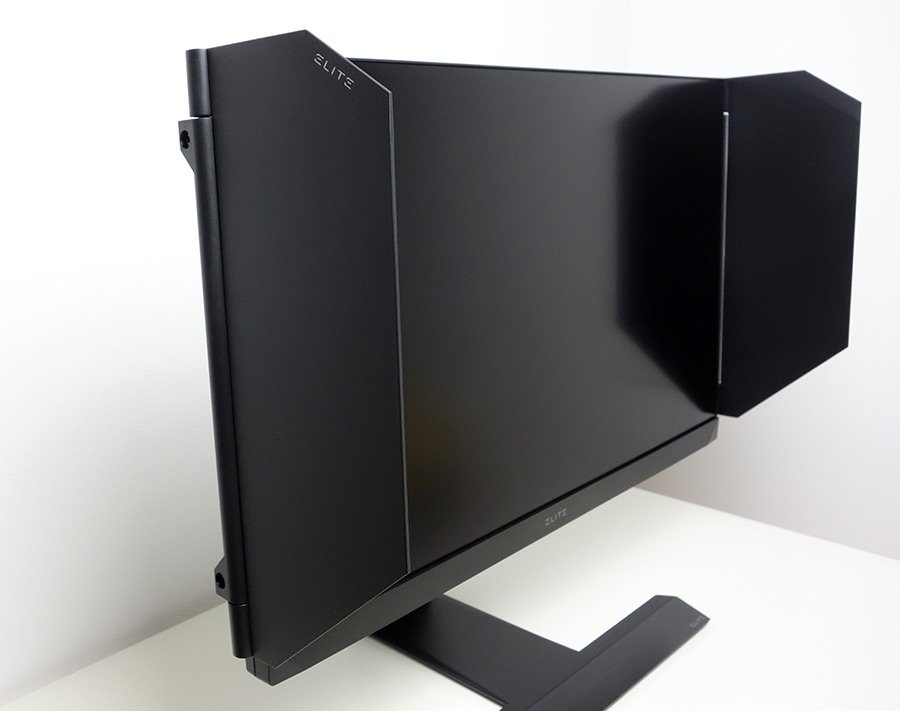 Das alles ist ViewSonic beim XG270QG aber noch nicht genug, und so gibt es auch noch zwei seitliche Sichtschutzplatten Inklusive. Für die Montage des Sichtschutzes wird ein Kreuzschlitzschraubendreher benötigt, die Anbringung ist dennoch denkbar einfach. Seitliches In-den-Bildschirm-Schauen von Gegnern hat damit ein Ende.