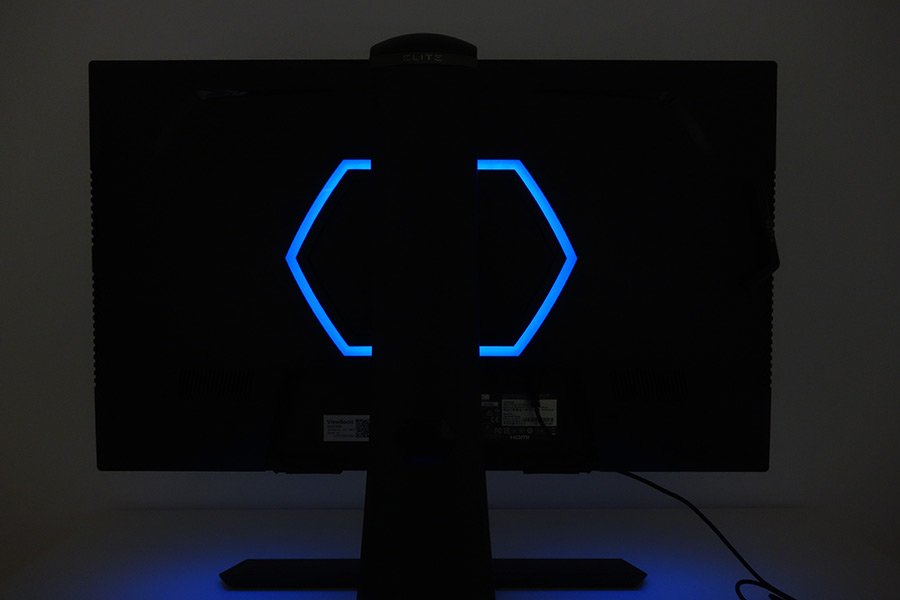 Was wäre ein Gaming-Monitor ohne LED-Beleuchtung? Daher besitzt auch der ViewSonic XG270QG eine externe LED-Beleuchtung auf der Gehäuserückseite und -unterseite. Im OSD kann unter dem Menüpunkt „Elite RGB“ die LED-Beleuchtung aktiviert und gesteuert werden. Rückseite und Basis können getrennt voneinander eingestellt werden. Allerdings ist im OSD der Funktionsumfang stark eingeschränkt. Hier kann nur die Beleuchtungsart zwischen Regenbogen, Pulsieren und Stoß gewählt werden. Laut ViewSonic-Website gibt es aber Zusatz-Software, mit der die Beleuchtung mit deutlich größerem Funktionsumfang angesteuert werden kann.