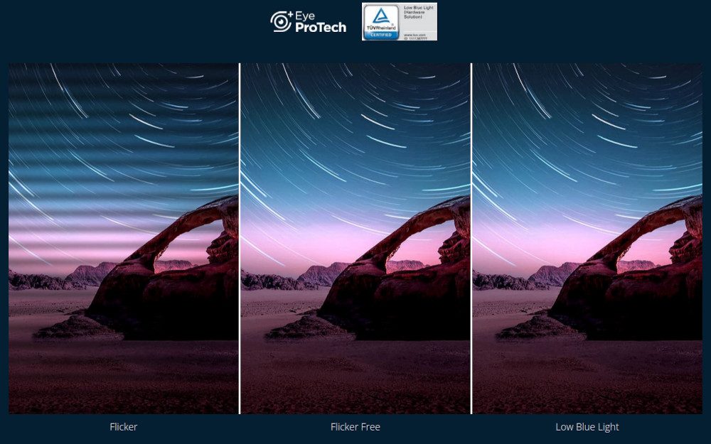Auch hinsichtlich Ergonomie weiß der ViewSonic ColorPro VP2776T-4K mit einem großzügigen Feature-Set zu gefallen. So können Sie den 27-Zöller nicht nur um -3 bis +22 Grad neigen und um 120 Grad seitlich drehen, sondern auch um 120 mm in der Höhe verstellen und um 90 Grad in den Pivot-Modus versetzen. Letzteres ist gerade für die Bildbearbeitung ein essenzieller Aspekt und erleichtert die Arbeit massiv. Und wer sich um Augenermüdung oder Kopfschmerzen sorgt, dürfte mit Blick auf den Hardware-Blaulichtfilter und die flimmerfreie Hintergrundbeleuchtung direkt beruhigt sein. Unter dem Namen Eye ProTech+ bündelt ViewSonic diese Funktionen für ein augenschonendes Seherlebnis.